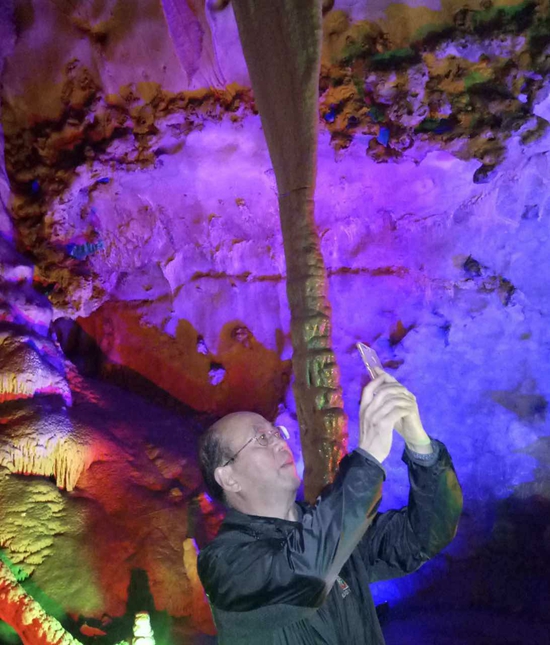 前年華奎先生回鄉(xiāng)游覽“小巫峽”五彩溶洞后,景區(qū)將會(huì)奎先生的留影制成了多處巨幅廣告