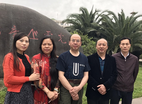 文聯(lián)主席謝尚堯、副主席郭鴻雁等陪同華奎夫婦游覽光霧山景區(qū)后合影留念