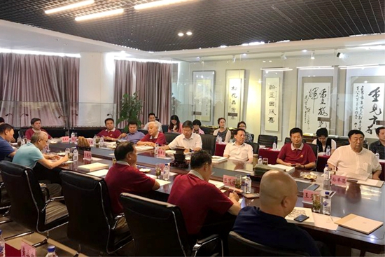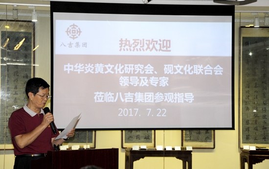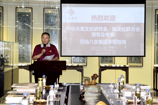 7月22日上午,中華炎黃文化研究會常務副會長張希清,硯文化聯合會名譽會長劉紅軍、名譽副會長張維業,聯合會顧問楊斌、執行會長唐本高,中國工藝美術大師、常務副會長劉克唐,中國工藝美術大師、副會長石飚,副會長馮明躍,榮譽會長王習則、榮譽副會長孫舉德,中國工藝美術大師、專委會顧問張慶明、王祖偉、曹加勇,聯合會專委會委員華慈祥、陳國源等一行30余人赴吉林省八吉工美藝術集團進行了參觀考察,觀看了松花石藝術品陳列展示并召開交流座談會。吉林省八吉工藝美術集團是國內唯一一家專注于松花石產業投資、松花石硯、精品奇石、松花石旅游產品及松花石珠寶用品開發的大型集團公司,資產近百億元。八吉集團已陸續收購松花石原礦和精品奇石20余萬件,原創松花石硯大師作品近萬方,為松花石藝術文化產業中的龍頭企業。