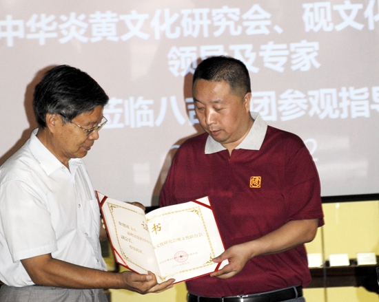 中華炎黃文化研究會常務副會長張希清為徐建國董事長頒發任命書