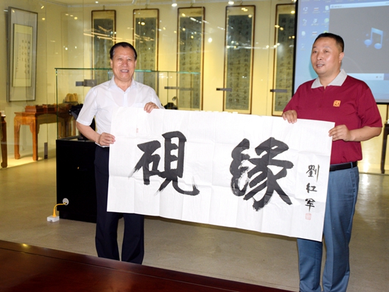 劉紅軍會長為徐建國董事長贈送墨寶《硯緣》