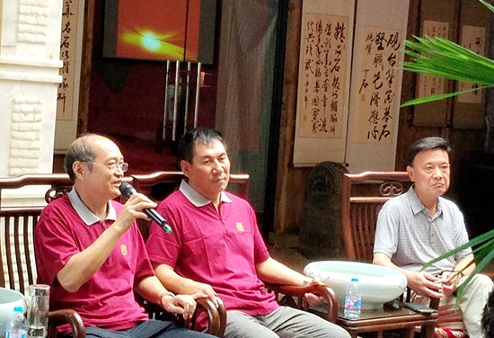 參觀結束后,舉行了“慶八一•憶傳統•喜迎十九大座談會”。孫臨平、陳國源、張國興、高玉家、金彤、張得一、侯建國、董永裁等分別發言,對中華硯文化的傳承、創新與發展提出了意見和建議。劉紅軍會長作總結發言指出,在黨中央、國務院關于大力弘揚中華優秀傳統文化國策下,我們通過硯文化展覽活動,宣傳軍魂、弘揚優秀的民族精神,這就是我們的文化擔當和政治擔當,這也是我們的情懷。我們對人民英雄、革命軍人充滿感情,我們對革命事跡充滿敬意,我們對傳承優秀的傳統文化充滿期待。將繼續推進學習貫徹習近平總書記系列重要講話精神,緊密團結在以習近平同志為核心的黨中央周圍,銘記歷史、不忘初心、繼往開來、振興中華。以優異成績迎接黨的十九大勝利召開。
