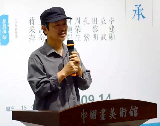 我是第一次在這么多我敬仰的前輩面前講話。我今天特別榮幸在我的老師和這么多先生的指導(dǎo)下參加這個(gè)展覽,尤其是聽(tīng)剛才各位導(dǎo)師的講話,更是受益匪淺。我想也代表21位參展弟子,感謝展覽主辦方、承辦方和導(dǎo)師,還有策展人的努力,組織呈現(xiàn)這么完美的展覽,我們會(huì)一起努力把中國(guó)畫(huà)的優(yōu)良傳統(tǒng)傳承下去。