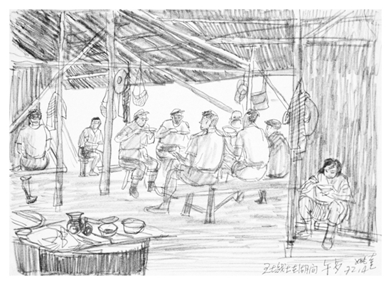 觀眾們在介紹姚奎先生的照片中,看到了他吃苦耐勞、風餐露宿的創作情景。展覽中有一部分是他在湖北干校艱苦的勞作之余創作的速寫、水粉與大幅油畫,確是難能可貴的時代記錄,給人印象頗深。