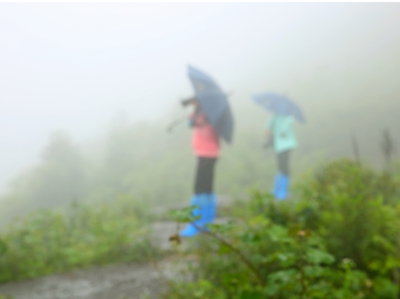圖4 煙雨朦朧中勤勉的攝影者,她們的身影是雨中一道靚麗的風景