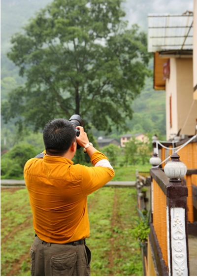 圖15 “中企攝”常務理事錢亞明在“中國儺城”進行創作。他也是如周勇董事長一樣,有底線、有所不為的企業家。曾經深夜驚醒后,去工地勘察,及時發現包工頭偷工減料并毅然退出相關項目。這種定力令人敬重!