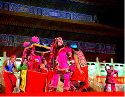 實(shí)話實(shí)說(shuō),第一次領(lǐng)受“百城千舞”任務(wù)時(shí),多多少少有點(diǎn)抵觸,僅僅當(dāng)成一項(xiàng)工作,只是在寶雞,觀摩了第一次帶妝彩排,才完全顛覆了對(duì)廣場(chǎng)舞既有的印象——廣場(chǎng)舞已絕不僅僅是一項(xiàng)全民健身運(yùn)動(dòng),廣場(chǎng)舞正在高度藝術(shù)化。在過(guò)去的一年中,更多地關(guān)注廣場(chǎng)舞如何向民族舞蹈汲取養(yǎng)料,為此觀看了貴州舟溪蘆笙堂與臺(tái)江姊妹節(jié)的苗族舞蹈,云南迪慶巴拉格宗與維西的原生態(tài)藏族舞蹈,甘肅阿克塞與新疆喀納斯的哈薩克舞蹈,云南瀾滄的佤族、哈尼族、拉祜族等少數(shù)民族舞蹈。而一個(gè)盲區(qū),是沒(méi)有向民俗尋找廣場(chǎng)舞的源流。而本次盛典中,從東北秧歌與二人轉(zhuǎn)中蛻變出的非遺舞蹈——“娶媳婦”恰恰讓人耳目一新!其夸張的動(dòng)作,讓人忍俊不住,為之捧腹!