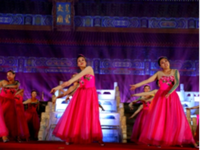 圖1 一如歷次百城千舞的大型活動(dòng),首個(gè)全體參與的廣場(chǎng)舞節(jié)目還是《站在草原望北京》。只是9月7日的盛典是“百城千舞”第一次進(jìn)北京,又是在太廟——中國(guó)文化的最高殿堂,因此顯得格外輝煌盛大!
