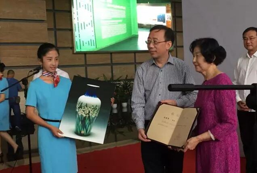 開幕式上,嵇錫貴大師向浙江省博物館捐贈“釉上彩水仙花瓶”,并進行《中國工藝美術大師全集——嵇錫貴卷》的新書發布。