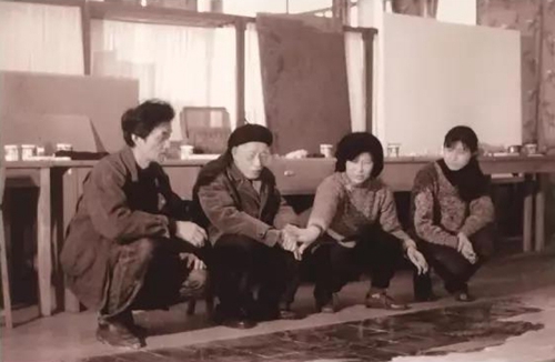 2003年,鄧白先生指導壁畫(左起:郭琳山 鄧白 嵇錫貴 郭藝)