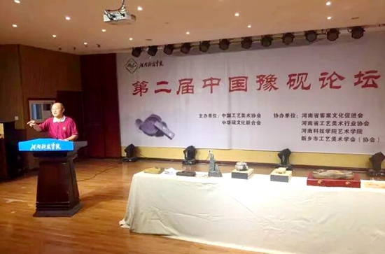 本屆論壇主題“豫硯文化的傳承創新與融合發展”。中華炎黃文化研究會硯文化聯合會副會長黃海濤 、河南省工藝美術協會會長張玉骉 ,中國石雕藝術大師、河南天壇盤谷硯傳承人張書碧, 河南虢州硯傳承人張天水 ,中國工藝美術行業大師、河南澄泥硯傳承人游敏 ,河南黃石硯傳承人張偉 ,河南天壇盤谷硯、共硯傳承人張健 ,河南省濟源市工藝美術學會制硯專業委員會主任李喜蓮,河南科技學院美術學院副院長雷保潔 等分別發言,就硯臺文化的傳承、創新乃至豫硯文化的繁榮與發展,都提出了比較充實的理論與操作性很強的建議。