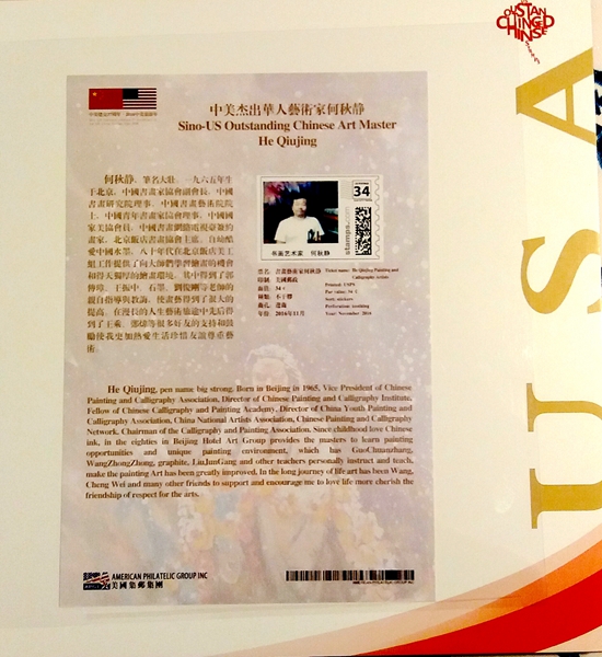 為慶祝中美建交37周年美國集郵集團(tuán)在中美兩國政府的支持下,特出版發(fā)行了《中美建交37周年紀(jì)念郵冊——中美杰出華人藝術(shù)家系列郵票及紀(jì)念珍藏冊》。 我國實(shí)力派青年畫家何秋靜作品榮耀入選到該紀(jì)念郵冊中,這些作品將作為美國郵票圖案在全美及全球發(fā)行。