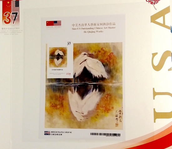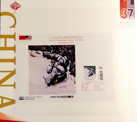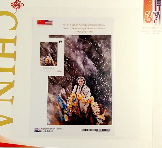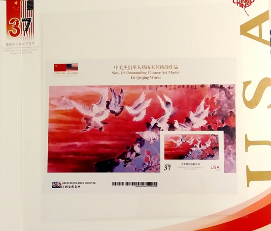 著名國畫家何秋靜作品入選中美建交37周年紀(jì)念郵冊