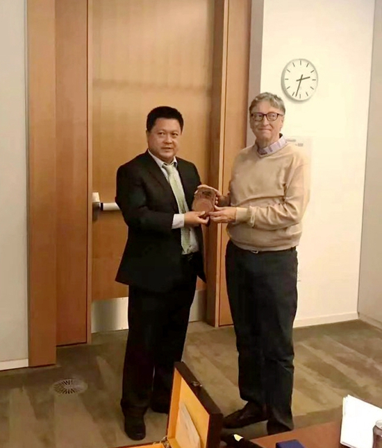 期間山東省政協(xié)常委 東方匯泉集團(tuán)董事局主席 東方君公益基金會(huì)會(huì)長(zhǎng) 中華炎黃文化研究會(huì)硯文化聯(lián)合會(huì)常務(wù)副會(huì)長(zhǎng)董方軍先生贈(zèng)送給比爾、蓋茨先生一方由中華炎黃文化研究會(huì)硯文化聯(lián)合會(huì)會(huì)員,全國(guó)首界中華硯雕師 齊增升雕刻的青州紅絲硯《上善若水》!