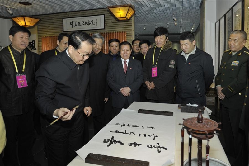 整個參觀活動現場氣氛輕松和諧。一起陪同參觀的領導還有:第十屆全國人大副委員長、中華炎黃文化研究會會長許嘉璐;武警部隊司令員王建平,北京市委常委、宣傳部長魯煒,武警北京總隊總隊長魏哲、政委張瑞清,中華硯文化發展聯合會副會長、武警部隊原副參謀長張維業,中華硯文化發展聯合會副會長、武警部隊政治部原副主任張補旺,中華硯文化發展聯合會副會長、武警部隊后勤部原副部長許世寬,北京市朝陽區區委書記陳剛等。