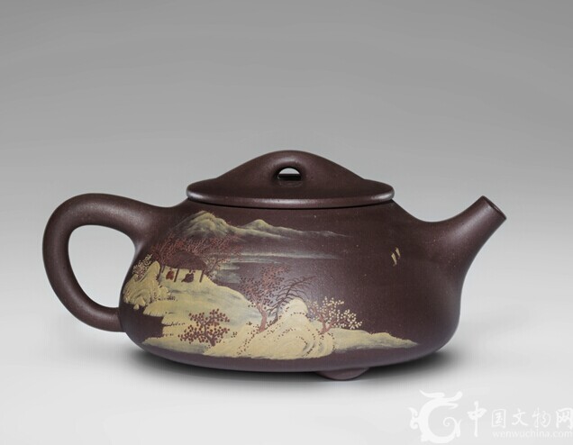 泥繪山水石瓢壺 故宮博物院宮廷紫砂研究專家于富春作品