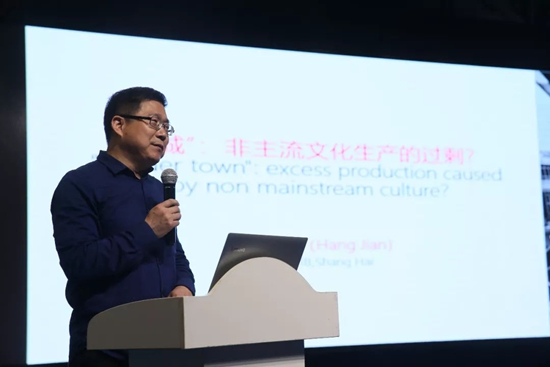 第三位發(fā)言的嘉賓是中國美術(shù)學院的副院長杭間教授,他從湖南鳳凰的一個藝術(shù)展案例著手,分析了中國現(xiàn)在所面臨的“過剩”問題。在探討“過剩”本質(zhì)的時候,他認為必須要把握一個 “度”,這個“度”不但要對藝術(shù)介入改造或者更新城市本身有著深刻的影響,同時它要對城市生活賦予新的價值意義,就像作為淳樸、獨立、自足的中國田園,鳳凰古城在其文化背景上有特殊的坐標意義,但是文化創(chuàng)意產(chǎn)業(yè)的開發(fā)導(dǎo)致它的文化面貌被改變,而這個時候“度”的把握就尤其重要:怎樣才能在借鑒外來東西的同時又能夠保留自己的身份?這個是我們共同面臨和亟需解決的問題。