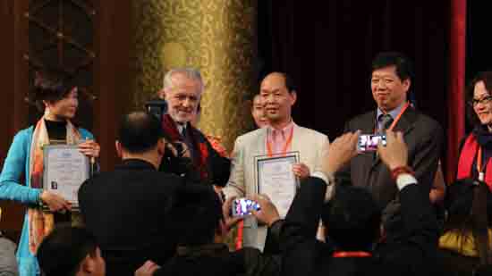 當日下午,南方玉博城集團古博樓藝術總監(jiān)王運輝被組委會隆重宣布榮膺聯(lián)合國千年發(fā)展目標公益主題活動——中國周“中國十大收藏家”榮譽稱號,古博樓高級顧問余皖生送評的“唐代水晶嵌寶貴妃榻”被評定為中國民間十大國寶,南方玉博城集團董事長江功堯先生、總裁張小兵女士親臨北京飯店金色大廳中國收藏家年會暨收藏品捐贈儀式活動現(xiàn)場。代表南方玉博城集團古博樓博物館向組委會捐贈兩件國寶級文物,表示對“推動聯(lián)合國千年發(fā)展目標實施,共圓中華文化偉大復興夢想”主題的支持與良好愿景。