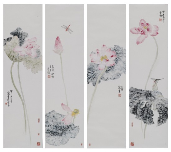 寂靜四條屏132cm×36cm×4紙本設色2014年