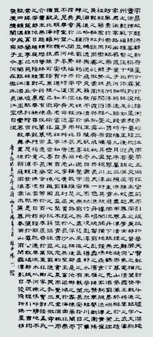 正是持守著這個根本,林中陽三十余年的辛勤耕耘才有了如今的收獲。他的作品楷、行、隸、篆諸體兼備,其楷書既具顏筋柳骨之功底,又有率意天真的意趣;其隸書,深得漢碑之精髓;其篆書,線條凝練古拙,渾穆自然,時出奇趣;其行書,講究法度與文氣得開合,既有王逸少的隨意和率真,又有米黃的灑脫與從容。觀賞林中陽的作如登群山峰巒,如觀長河波濤,似縱馬馳騁于大漠草原,令人精神為之一振。
