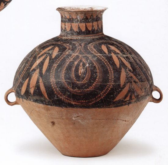 寧夏博物館藏新石器時代豆莢紋雙耳彩陶壺