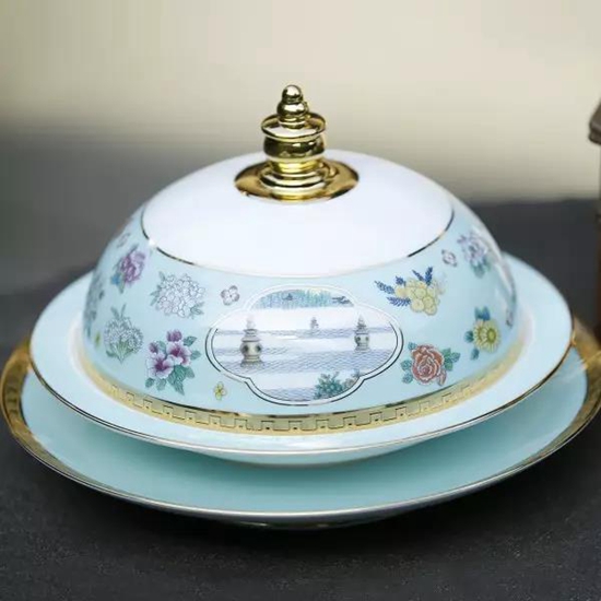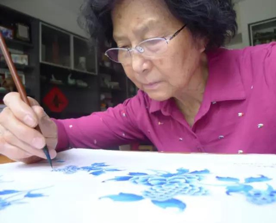 嵇錫貴是從事陶瓷彩繪藝術(shù)的一位畫家,她一輩子想圓的夢就是能在陶瓷器物上繪制出自己心中最美的圖畫。15歲那年,她考入景德鎮(zhèn)陶瓷美術(shù)技藝學(xué)校青花班,師從名藝人學(xué)習(xí)青花。19歲那年,她考入景德鎮(zhèn)陶瓷學(xué)院美術(shù)設(shè)計系,向名師和老藝人學(xué)習(xí)古彩和粉彩。23歲那年,她進(jìn)入輕工業(yè)部陶瓷研究所藝術(shù)室工作,逐步積累豐富的實踐經(jīng)驗,打下了深厚的傳統(tǒng)彩繪藝術(shù)和現(xiàn)代設(shè)計藝術(shù)的基礎(chǔ),各種傳統(tǒng)技法無不精通,釉上、釉下、仿古、創(chuàng)新,都能得心應(yīng)手。44歲那年,她調(diào)入浙江省工藝美術(shù)研究所,此后又潛心鉆研越窯青瓷、南宋官窯青瓷、龍泉青瓷、婺州窯青瓷、長興紫砂陶器的燒制技藝和裝飾技藝。她深深懂得,美不能局限于欣賞,必須牢牢地扎根于民眾的生活中,把美和生活中的器物統(tǒng)一起來,才能顯現(xiàn)出工藝文化的力量。從藝60年來,由她裝飾的陶瓷藝術(shù)品不計其數(shù),并屢屢在國際、國內(nèi)的大展中斬金奪銀。1975年,她作為主要設(shè)計制作者之一,為中南海毛主席用瓷(即“7501”瓷)繪制了整套釉下彩餐具《梅竹》;1976年,她為上海錦江飯店接待外國元首創(chuàng)作了《麥浪滾滾》的整套圖案;2016年,她又擔(dān)任G20杭州峰會國宴用瓷的畫面總設(shè)計,創(chuàng)作并繪制了《繁華盛世》《國色天香》兩套瓷器彩繪作品。這些作品,因其高貴和稀少,民間已經(jīng)很難見到。就在我寫此文時,微信上傳來消息,2017年7月20日,中國國家博物館確定收藏和展出《繁華盛世》和《國色天香》這兩套國宴用瓷。