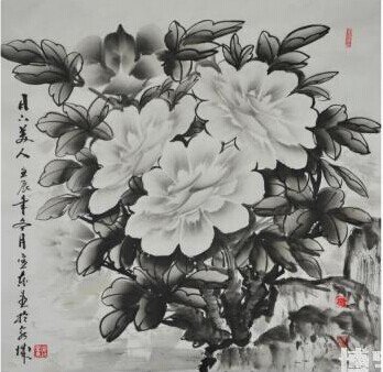 他畫牡丹富有創(chuàng)意,追求一種氣勢、一種神韻,使整幅畫線條圓潤挺拔,筆觸瀟灑流暢,獨具一種生趣盎然、空靈典麗、意韻飛揚的風格。他畫牡丹常常是有所寄托,寄寓對生活的感受,抒情達意,主題鮮明。他閱歷豐富,氣質涵養(yǎng)深厚,堅定而樂觀。所有的氣質透在畫里,花見其人,畫見其人。