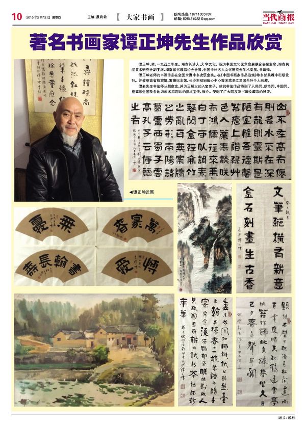 圖為2015年2月12日出版的《當代商報》刊發譚正坤老師的作品