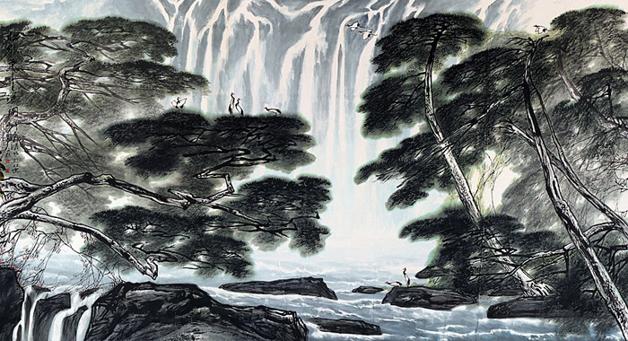 松鶴飛瀑圖 國家新聞出版廣電總局藏