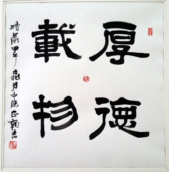 此次黃中書法作品展內容豐富、形式多樣,其中有遒勁剛正、法度嚴謹的楷書、有張馳有度、敦厚莊重的隸書、行云流水、風神高邁的行書。綜合展示了黃中先生近年來書法作品的藝術風貌。本次展覽為期十天。溫古通和這一展覽主題旨在表達書法藝術的中庸之美,黃中先生的書法用筆講究圓融和暢,遒勁自然,心有所及筆意隨之,追求“靜重靈妙”之境界,并主張用筆收斂,不宜放縱,曲與直、藏與露、方與圓、斷與連、枯與潤、行與留、疾與澀、平與側等都要對立統一。其結構經營上注重疏密、大小、欹正等的辯證統一。作為一位對書法藝術理行雙證的實踐者,他認為孫過庭 “違而不犯,和而不同”的書法結構美學正是“書法在對立中求統一,在統一中求變化”的最好注解。其章法的分行布白追求氣脈連貫,力求在牽絲映帶、心手雙暢中實踐動與靜、連與斷、均與亂、呼與應、起與承、并與和的對立統一,其書風不激不厲而風規自遠。可謂筆筆有源、字字有根。