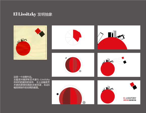 張涵的這句話使我想起了她的另一個設計作品《發明抽象》(見下圖三)。其主題是對俄羅斯一名藝術家在紐約的畫展的宣傳。張涵對這位藝術家的“抽象”進行了抽象的解讀,借用原畫的方與圓,紅與黑。“眼前的世界,其實是每個人心中世界的折射與投影。”不管人們是否真正理解了俄羅斯藝術家的抽象,或者張涵設計師的抽象之抽象,然而,張涵這種對“抽象”之解剖則具有創新性的發明,它進一步激發了人們一窺藝術家抽象世界之奧秘的好奇心。宣傳功能因此完成。