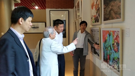 原中央工藝美院副院長張世禮等在欣賞光影平面油畫