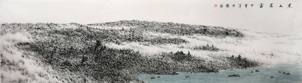善于以詩化了的心靈去感知生活之美,并通過焦墨的藝術形式去表現詩情畫意。其作品中的每一筆就像一篇篇優美的抒情詩,充滿寫意風采和音樂般美妙的韻致,在“光”與“黑”的變幻中,令人體味到靈動和神韻的旋律。