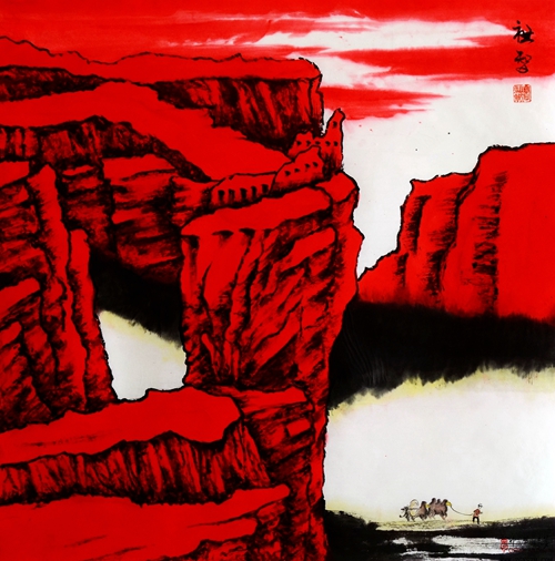 山水是詩(shī)人畫家抒寫情思的媒介,所以中國(guó)畫和詩(shī),都愛(ài)以山水境界做表現(xiàn)和詠味的中心。中國(guó)畫最重山水,與意境說(shuō)分不開(kāi)。閆祖智山水畫面中傳達(dá)了他自身的特殊情感以及生命意識(shí),而這種深刻表現(xiàn)作者靈魂的山水畫圖式又是他復(fù)雜的、特殊的情感摧養(yǎng)出來(lái)的。