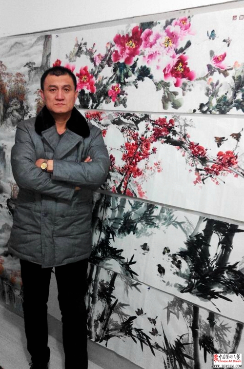 李曉民 遼寧盤錦市人,受家庭熏陶,自幼喜愛書畫藝術(shù),多年來勤學苦研, 博采眾長,創(chuàng)作過一批優(yōu)秀作品。作品不斷探求牡丹藝術(shù)作品的生機美、動勢美、神韻美和意蘊美,創(chuàng)作出了自己獨特的藝術(shù)風格。他畫的牡丹,其用筆雖速率卻不浮草,筆少而不孤,墨繁而不亂;姿態(tài)生動,筆觸虛靈,著色古雅。葉與花的襯托,枝與干的變化,尤其是巧妙地利用長款的氣勢結(jié)合大片的空白,在觀眾和讀者不知不覺中受到強烈的感染,催人奮進,引人向上。他的作品以艱澀頓挫之筆墨畫枝干,以率意奔放之筆墨畫花畫葉,似有春風拂面之意趣。花與葉的安排,枝與干的穿插,都是以拙勝巧的好手法、新創(chuàng)意。他以題詩用典贊頌?zāi)档げ晃窂姍?quán)的精神,既表現(xiàn)了瑞閣重氣質(zhì)、重氣勢、重氣韻的追求,也流露了他的偉岸氣度和超然情緒。如《孔雀戲牡丹》,《花開富貴》,《吉祥富貴》,《花好月園》,《歲歲甜甜》,《竹林山水》等作品,受到許多藝界人士的贊賞與好評。