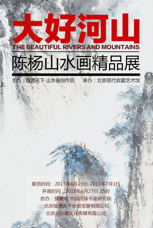 由搜藏天下、山水畫創作院主辦,北京現代收藏藝術館承辦,搜藏網、中國民族書畫研究院、北京維鼎大千投資發展有限公司、北京金彤閣文化傳媒有限公司協辦的“大好河山——陳楊山水畫精品展”將于6月27日15時在北京現代收藏藝術館開幕。此次展覽從6月23日展至7月1日。