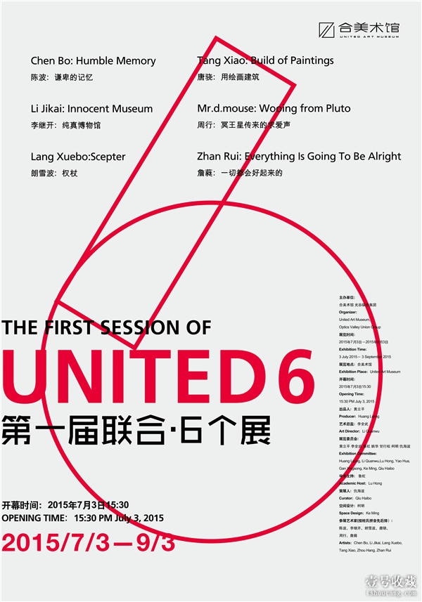 武漢合美術(shù)館為了大力度的推介藝術(shù)新人與藝術(shù)新作,將于2015年7月3日隆重舉辦第一屆“聯(lián)合.6個(gè)展”。此次展覽匯集了國(guó)內(nèi)6位優(yōu)秀青年藝術(shù)家,他們是:陳波、李繼開、朗雪波、唐驍、周行、詹蕤。展覽由批評(píng)家魯虹擔(dān)任學(xué)術(shù)主持,青年策展人仇海波策劃。