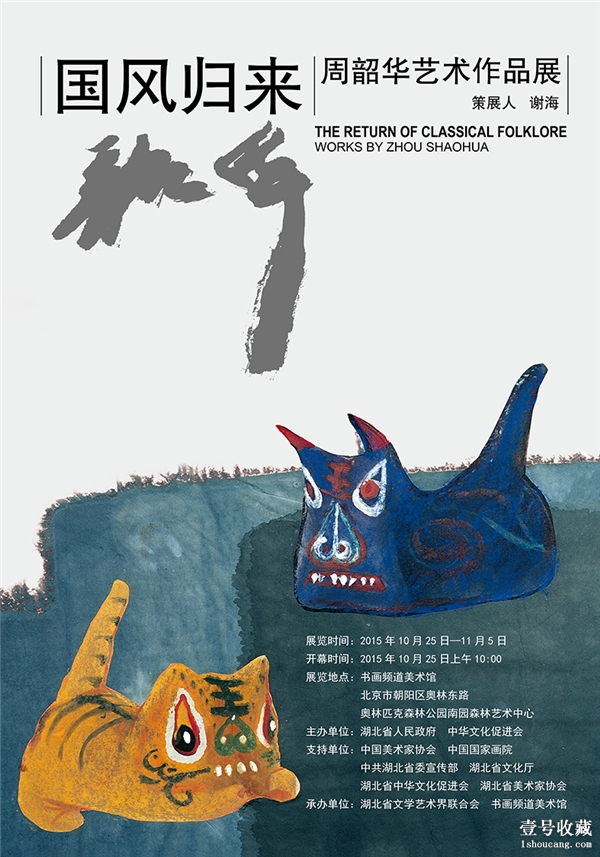 周韶華藝術發展有著自身的邏輯,盡管在創作《神游星空》系列作品前后產生了不少抽象的作品,但是就其發展的譜系而言,他卻從來沒有放棄過可視的自然和可以斷代的標準器,只是,被刻上“2015年制”的《國風歸來》系列作品和以前的作品都不同,出現了我們兒時的玩偶和我們記憶中已經逐漸模糊的剪紙藝術,而這樣具有裝飾性的作品出自87歲的周韶華之手。